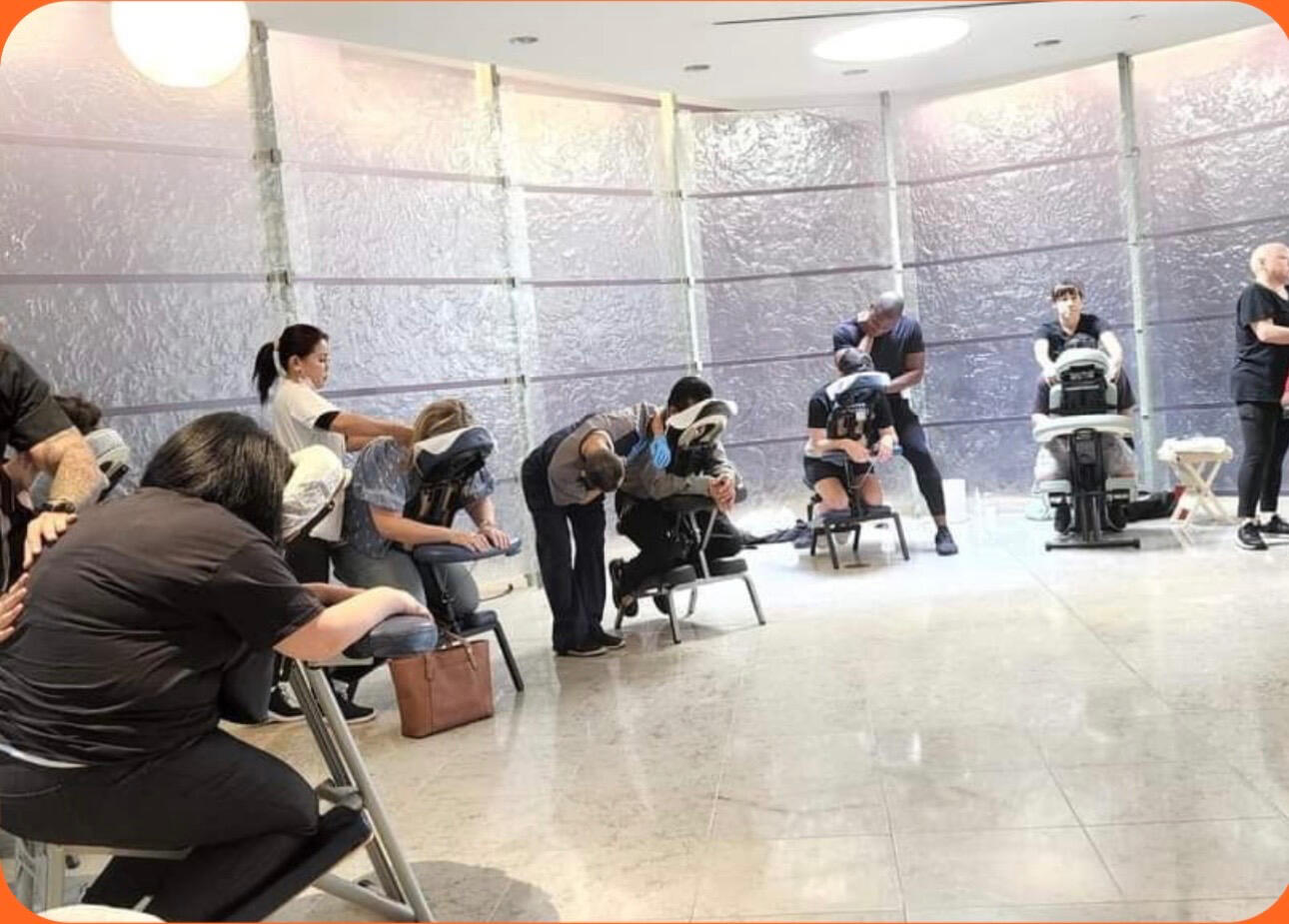 $38- 15min Chair Massage w/ Aromatherapy (Public setting)$50- 20min Chair Massage w/ aromatherapy (Public setting)$75- 30min Chair Massage w/ Aromatherapy (Public setting)$100- 45min Deep tissue Table Massage w/ Aromatherapy (Public setting, over the clothes, laying down)